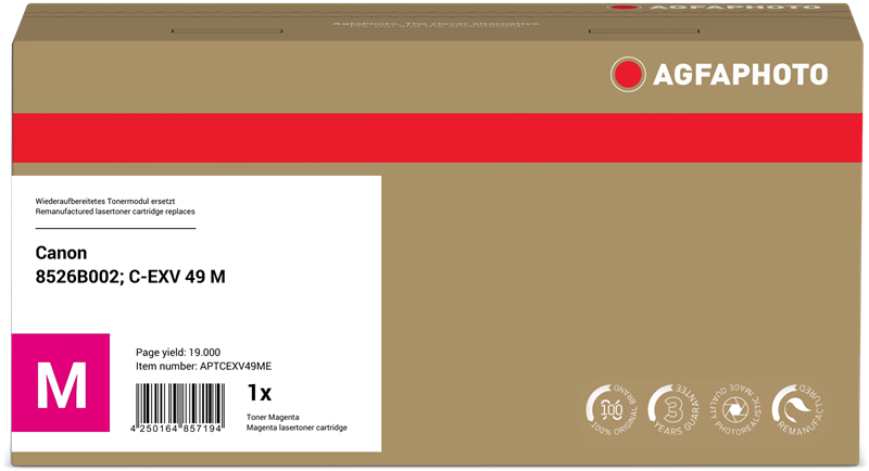compatible with Canon C-EXV49m Agfa Photo APTCEXV49ME magenta toner (APTCEXV49ME) toner magenta ~19,000 pages €69.27VAT incl., plus shipping costs directly from stock Delivery time 1-2 days add to basket APTCEXV49BKE black ~36,000 pages0.2 p / page €56.98 APTCEXV49CE cyan ~19,000 pages0.4 p / page €69.27 APTCEXV49ME magenta ~19,000 pages0.4 p / page €69.27 APTCEXV49YE yellow ~19,000 pages0.4 p / page €69.27 Product information "Agfa Photo APTCEXV49ME magenta toner"toner magenta ~19,000 pages Read moreread lessSuitable for the following printersCanon imageRUNNER (iR)imageRUNNER ADVANCE C3530i ESiR ADV DX C3822iiR ADV DX C3826iiR ADV DX C3830iiR ADV DX C3835iiR ADV C3320iiR ADV C3325iiR ADV C3330iiR ADV C3520iiR ADV C3525iiR ADV C3530iiR DX C3720iCanon imageRUNNER C (iR C)iR ADV DX C3725iManufacturer information on product safety (GPSR)Lupus Imaging & Media GmbH & Co. KGPilatuspool 220355 Hamburg E-mail: info@lupus-imaging-media.com Website: https://www.agfaphoto.com/ Suitable accessories for your printer Original Canon C-EXV49bk black toner (8524B002)colourTape Width Size colour: Page number:~36,000 pagesPage price:0.2 p / page€70.47VAT incl., plus shipping costs directly from stock add to basket directly from stock add to basket directly from stock add to basket directly from stock add to basket directly from stock add to basket Top seller compatible with Canon C-EXV49bk Prindo Green black tonercolourTape Width Size colour: Page number:~36,000 pagesPage price:0.1 p / page€46.48VAT incl., plus shipping costs directly from stock add to basket directly from stock add to basket directly from stock add to basket directly from stock add to basket Price / performance winner compatible with Canon C-EXV49bk Prindo Classic black tonercolourTape Width Size colour: Page number:~36,000 pagesPage price:0.1 p / page€43.17VAT incl., plus shipping costs directly from stock add to basket directly from stock add to basket directly from stock add to basket directly from stock add to basket Original Canon toner for your printer. Canon C-EXV49bk black toner (8524B002)colourTape Width Size:Standard colour: Page number:~36,000 pagesPage price:0.2 p / page€70.47VAT incl., plus shipping costs directly from stock add to basket Canon C-EXV49 MCVP black / cyan / magenta / yellow value pack (+ Prindo Universal Papier 2500 Blatt)colourTape Width Size:Standard colour: Page number:~93,000 pagesPage price:0.4 p / page€370.35VAT incl., free shipping directly from stock add to basket Canon C-EXV49c cyan toner (8525B002)colourTape Width Size:Standard colour: Page number:~19,000 pagesPage price:0.5 p / page€98.96VAT incl., free shipping directly from stock add to basket Canon C-EXV49m magenta toner (8526B002)colourTape Width Size:Standard colour: Page number:~19,000 pagesPage price:0.5 p / page€98.96VAT incl., free shipping directly from stock add to basket Canon C-EXV49y yellow toner (8527B002)colourTape Width Size:Standard colour: Page number:~19,000 pagesPage price:0.5 p / page€98.96VAT incl., free shipping directly from stock add to basket Our Top Sellers Compatible Prindo Green toner for your printer.✅ Level indicator ✅ Environmentally friendly recycled ✅ More printing performance ✅ 5-year warranty ✅ No loss of warranty for your printer compatible with Canon C-EXV49bk Prindo Green black tonercolourTape Width Size:Standard colour: Page number:~36,000 pagesPage price:0.1 p / page€46.48VAT incl., plus shipping costs directly from stock add to basket compatible with Canon C-EXV49c Prindo Green cyan tonercolourTape Width Size:Standard colour: Page number:~19,000 pagesPage price:0.3 p / page€65.28VAT incl., plus shipping costs directly from stock add to basket compatible with Canon C-EXV49m Prindo Green magenta tonercolourTape Width Size:Standard colour: Page number:~19,000 pagesPage price:0.3 p / page€65.28VAT incl., plus shipping costs directly from stock add to basket compatible with Canon C-EXV49y Prindo Green yellow tonercolourTape Width Size:Standard colour: Page number:~19,000 pagesPage price:0.3 p / page€65.28VAT incl., plus shipping costs directly from stock add to basket Our price / performance winners Compatible Prindo Classic toner for your printer.✅ Level indicator ✅ More printing performance ✅ 5-year warranty ✅ No loss of warranty for your printer compatible with Canon C-EXV49bk Prindo Classic black tonercolourTape Width Size:Standard colour: Page number:~36,000 pagesPage price:0.1 p / page€43.17VAT incl., plus shipping costs directly from stock add to basket compatible with Canon C-EXV49c Prindo Classic cyan tonercolourTape Width Size:Standard colour: Page number:~19,000 pagesPage price:0.3 p / page€60.62VAT incl., plus shipping costs directly from stock add to basket compatible with Canon C-EXV49m Prindo Classic magenta tonercolourTape Width Size:Standard colour: Page number:~19,000 pagesPage price:0.3 p / page€60.62VAT incl., plus shipping costs directly from stock add to basket compatible with Canon C-EXV49y Prindo Classic yellow tonercolourTape Width Size:Standard colour: Page number:~19,000 pagesPage price:0.3 p / page€60.62VAT incl., plus shipping costs directly from stock add to basket Your product is right in your shopping cart! Select your printer to make sure the selected product fits for you.Loading...