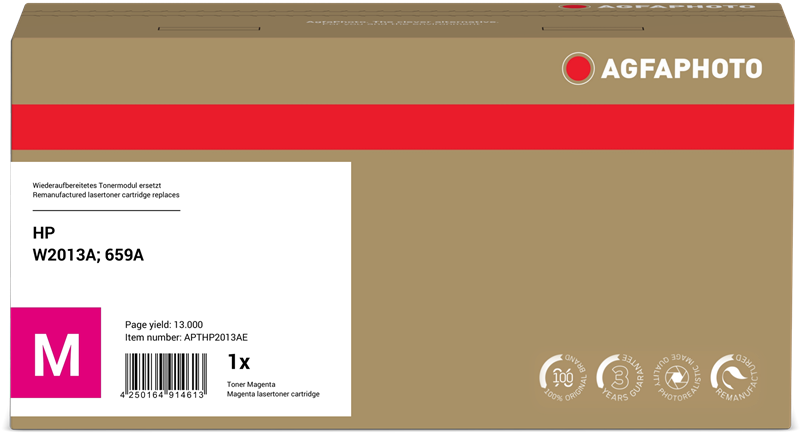 compatible with HP 659A Agfa Photo APTHP2013AE magenta toner (APTHP2013AE) toner magenta ~13,000 pages €335.13VAT incl., free shipping directly from stock Delivery time 1-2 days add to basket APTHP2010AE black ~16,000 pages0.9 p / page €149.19 APTHP2011AE cyan ~13,000 pages2.6 p / page €335.13 APTHP2013AE magenta ~13,000 pages2.6 p / page €335.13 APTHP2012AE yellow ~13,000 pages2.6 p / page €335.13 Product information "Agfa Photo APTHP2013AE magenta toner"toner magenta ~13,000 pages Read moreread lessSuitable for the following printersHP Color LaserJet EnterpriseColor LaserJet Enterprise M856dnColor LaserJet Enterprise MFP M776dnHP Color LaserJet Enterprise FlowColor LaserJet Enterprise Flow MFP M776zColor LaserJet Enterprise Flow MFP M776zsManufacturer information on product safety (GPSR)Lupus Imaging & Media GmbH & Co. KGPilatuspool 220355 Hamburg E-mail: info@lupus-imaging-media.com Website: https://www.agfaphoto.com/ Suitable accessories for your printer Original HP 659A black toner (W2010A)colourTape Width Size colour: Page number:~16,000 pagesPage price:1.4 p / page€218.46VAT incl., free shipping directly from stock add to basket Delivery date unknown add to basket Delivery date unknown add to basket directly from stock add to basket directly from stock add to basket directly from stock add to basket directly from stock add to basket directly from stock add to basket Price / performance winner compatible with HP 659A Prindo Classic black tonercolourTape Width Size colour: Page number:~16,000 pagesPage price:0.8 p / page€132.46VAT incl., free shipping directly from stock add to basket Delivery date unknown add to basket directly from stock add to basket directly from stock add to basket directly from stock add to basket directly from stock add to basket directly from stock add to basket directly from stock add to basket Original HP toner for your printer. HP 659A black toner (W2010A)colourTape Width Size:Standard colour: Page number:~16,000 pagesPage price:1.4 p / page€218.46VAT incl., free shipping directly from stock add to basket HP 659X black toner (W2010X)colourTape Width Size:XL colour: Page number:~34,000 pagesPage price:1.0 p / page€342.45VAT incl., free shipping Delivery date unknown add to basket HP 659A cyan toner (W2011A)colourTape Width Size:Standard colour: Page number:~13,000 pagesPage price:3.8 p / page€492.84VAT incl., free shipping Delivery date unknown add to basket HP 659X cyan toner (W2011X)colourTape Width Size:XL colour: Page number:~29,000 pagesPage price:2.6 p / page€760.09VAT incl., free shipping directly from stock add to basket HP 659A magenta toner (W2013A)colourTape Width Size:Standard colour: Page number:~13,000 pagesPage price:3.8 p / page€492.84VAT incl., free shipping directly from stock add to basket HP 659X magenta toner (W2013X)colourTape Width Size:XL colour: Page number:~29,000 pagesPage price:2.6 p / page€760.09VAT incl., free shipping directly from stock add to basket HP 659A yellow toner (W2012A)colourTape Width Size:Standard colour: Page number:~13,000 pagesPage price:3.8 p / page€492.84VAT incl., free shipping directly from stock add to basket HP 659X yellow toner (W2012X)colourTape Width Size:XL colour: Page number:~29,000 pagesPage price:2.6 p / page€760.09VAT incl., free shipping directly from stock add to basket Our price / performance winners Compatible Prindo Classic toner for your printer.✅ Level indicator ✅ More printing performance ✅ 5-year warranty ✅ No loss of warranty for your printer compatible with HP 659A Prindo Classic black tonercolourTape Width Size:Standard colour: Page number:~16,000 pagesPage price:0.8 p / page€132.46VAT incl., free shipping directly from stock add to basket compatible with HP 659X Prindo Classic XL black tonercolourTape Width Size:XL colour: Page number:~34,000 pagesPage price:0.6 p / page€200.87VAT incl., free shipping Delivery date unknown add to basket compatible with HP 659A Prindo Classic cyan tonercolourTape Width Size:Standard colour: Page number:~13,000 pagesPage price:2.3 p / page€299.88VAT incl., free shipping directly from stock add to basket compatible with HP 659X Prindo Classic XL cyan tonercolourTape Width Size:XL colour: Page number:~29,000 pagesPage price:1.6 p / page€449.82VAT incl., free shipping directly from stock add to basket compatible with HP 659A Prindo Classic magenta tonercolourTape Width Size:Standard colour: Page number:~13,000 pagesPage price:2.2 p / page€289.09VAT incl., free shipping directly from stock add to basket compatible with HP 659X Prindo Classic XL magenta tonercolourTape Width Size:XL colour: Page number:~29,000 pagesPage price:1.6 p / page€449.82VAT incl., free shipping directly from stock add to basket compatible with HP 659A Prindo Classic yellow tonercolourTape Width Size:Standard colour: Page number:~13,000 pagesPage price:2.2 p / page€289.09VAT incl., free shipping directly from stock add to basket compatible with HP 659X Prindo Classic XL yellow tonercolourTape Width Size:XL colour: Page number:~29,000 pagesPage price:1.6 p / page€449.82VAT incl., free shipping directly from stock add to basket Your product is right in your shopping cart! Select your printer to make sure the selected product fits for you.Loading...