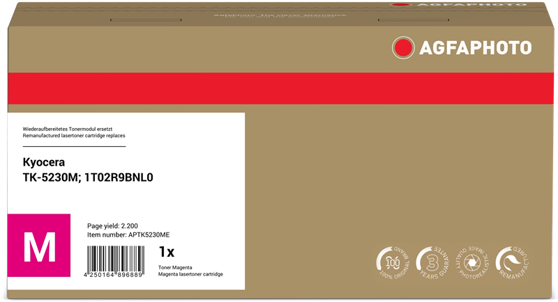 compatible with Kyocera TK-5230M Agfa Photo APTK5230ME magenta toner (APTK5230ME) toner magenta ~2,200 pages €73.47VAT incl., plus shipping costs directly from stock Delivery time 1-2 days add to basket APTK5230KE black ~2,600 pages1.9 p / page €49.75 APTK5230CE cyan ~2,200 pages3.3 p / page €73.47 APTK5230ME magenta ~2,200 pages3.3 p / page €73.47 APTK5230YE yellow ~2,200 pages3.3 p / page €73.47 Product information "Agfa Photo APTK5230ME magenta toner"toner magenta ~2,200 pages Read moreread lessSuitable for the following printersKyocera ECOSYS MECOSYS M5521cdnECOSYS M5521cdn KL3ECOSYS M5521cdwECOSYS M5521cdw KL3Kyocera ECOSYS PECOSYS P5021cdnECOSYS P5021cdn KL3ECOSYS P5021cdwManufacturer information on product safety (GPSR)Lupus Imaging & Media GmbH & Co. KGPilatuspool 220355 Hamburg E-mail: info@lupus-imaging-media.com Website: https://www.agfaphoto.com/ Suitable accessories for your printer Original Kyocera TK-5220K black toner (1T02R90NL1)colourTape Width Size colour: Page number:~1,200 pagesPage price:4.4 p / page€52.69VAT incl., plus shipping costs directly from stock add to basket directly from stock add to basket directly from stock add to basket directly from stock add to basket directly from stock add to basket directly from stock add to basket directly from stock add to basket directly from stock add to basket Top seller compatible with Kyocera TK-5220K Prindo Green black tonercolourTape Width Size colour: Page number:~1,200 pagesPage price:3.0 p / page€35.89VAT incl., plus shipping costs directly from stock add to basket directly from stock add to basket directly from stock add to basket directly from stock add to basket directly from stock add to basket directly from stock add to basket directly from stock add to basket directly from stock add to basket directly from stock add to basket Price / performance winner compatible with Kyocera TK-5220K Prindo Classic black tonercolourTape Width Size colour: Page number:~1,200 pagesPage price:2.8 p / page€33.33VAT incl., plus shipping costs directly from stock add to basket directly from stock add to basket directly from stock add to basket directly from stock add to basket directly from stock add to basket directly from stock add to basket directly from stock add to basket directly from stock add to basket directly from stock add to basket directly from stock add to basket Original Kyocera toner for your printer. Kyocera TK-5220K black toner (1T02R90NL1)colourTape Width Size:Standard colour: Page number:~1,200 pagesPage price:4.4 p / page€52.69VAT incl., plus shipping costs directly from stock add to basket Kyocera TK-5230K black toner (1T02R90NL0)colourTape Width Size:Standard colour: Page number:~2,600 pagesPage price:2.8 p / page€71.72VAT incl., plus shipping costs directly from stock add to basket Kyocera TK-5220C cyan toner (1T02R9CNL1)colourTape Width Size:Standard colour: Page number:~1,200 pagesPage price:5.7 p / page€68.79VAT incl., plus shipping costs directly from stock add to basket Kyocera TK-5230C cyan toner (1T02R9CNL0)colourTape Width Size:Standard colour: Page number:~2,200 pagesPage price:4.7 p / page€102.46VAT incl., free shipping directly from stock add to basket Kyocera TK-5220M magenta toner (1T02R9BNL1)colourTape Width Size:Standard colour: Page number:~1,200 pagesPage price:5.7 p / page€68.79VAT incl., plus shipping costs directly from stock add to basket Kyocera TK-5230M magenta toner (1T02R9BNL0)colourTape Width Size:Standard colour: Page number:~2,200 pagesPage price:4.5 p / page€99.53VAT incl., free shipping directly from stock add to basket Kyocera TK-5220Y yellow toner (1T02R9ANL1)colourTape Width Size:Standard colour: Page number:~1,200 pagesPage price:5.7 p / page€68.79VAT incl., plus shipping costs directly from stock add to basket Kyocera TK-5230Y yellow toner (1T02R9ANL0)colourTape Width Size:Standard colour: Page number:~2,200 pagesPage price:4.7 p / page€102.46VAT incl., free shipping directly from stock add to basket Our Top Sellers Compatible Prindo Green toner for your printer.✅ Level indicator ✅ Environmentally friendly recycled ✅ More printing performance ✅ 5-year warranty ✅ No loss of warranty for your printer compatible with Kyocera TK-5220K Prindo Green black tonercolourTape Width Size:Standard colour: Page number:~1,200 pagesPage price:3.0 p / page€35.89VAT incl., plus shipping costs directly from stock add to basket compatible with Kyocera TK-5230K Prindo Green black tonercolourTape Width Size:Standard colour: Page number:~2,600 pagesPage price:1.8 p / page€47.27VAT incl., plus shipping costs directly from stock add to basket Prindo Green black / cyan / magenta / yellow value packcolourTape Width Size:Standard colour: Page number:~9,200 pagesPage price:2.3 p / page€284.60-26%€209.92VAT incl., free shipping directly from stock add to basket compatible with Kyocera TK-5220C Prindo Green cyan tonercolourTape Width Size:Standard colour: Page number:~1,200 pagesPage price:3.9 p / page€46.87VAT incl., plus shipping costs directly from stock add to basket compatible with Kyocera TK-5230C Prindo Green cyan tonercolourTape Width Size:Standard colour: Page number:~2,200 pagesPage price:3.2 p / page€69.79VAT incl., plus shipping costs directly from stock add to basket compatible with Kyocera TK-5220M Prindo Green magenta tonercolourTape Width Size:Standard colour: Page number:~1,200 pagesPage price:4.8 p / page€57.36VAT incl., plus shipping costs directly from stock add to basket compatible with Kyocera TK-5230M Prindo Green magenta tonercolourTape Width Size:Standard colour: Page number:~2,200 pagesPage price:3.2 p / page€69.79VAT incl., plus shipping costs directly from stock add to basket compatible with Kyocera TK-5220Y Prindo Green yellow tonercolourTape Width Size:Standard colour: Page number:~1,200 pagesPage price:4.8 p / page€57.36VAT incl., plus shipping costs directly from stock add to basket compatible with Kyocera TK-5230Y 