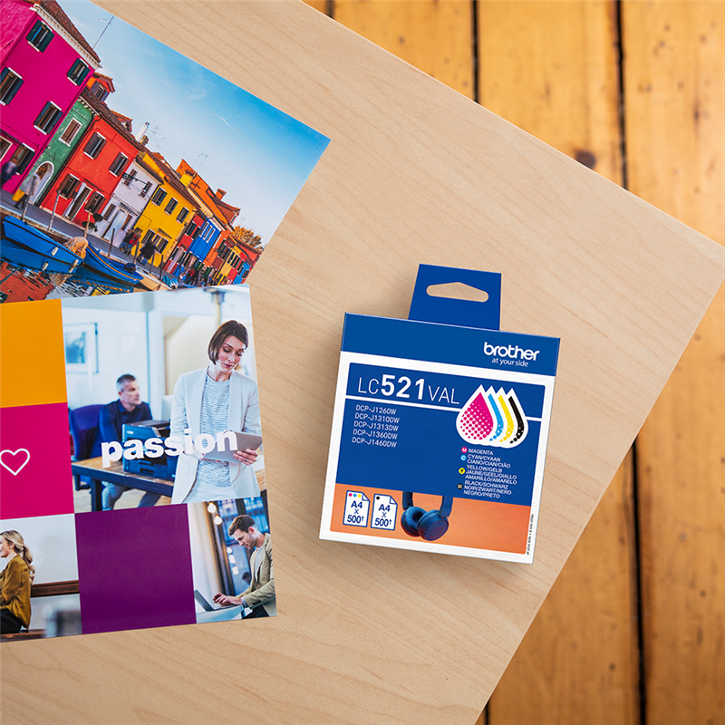 Brother LC521VAL multipack black / cyan / magenta / yellow (LC521VAL) (LC521VAL) Brother LC521VAL Genuine Ink Cartridge Value Pack, Black, Cyan, Magenta, Yellow, 4 pc(s), 500 pages, 500 pages, Multi pack ~2,000 pages €70.64-10%€63.90VAT incl., plus shipping costs directly from stock Delivery time 1-2 days add to basket Content LC521BK black ~500 pages 4.0 p / page LC521C cyan ~500 pages 2.9 p / page LC521M magenta ~500 pages 2.9 p / page LC521Y yellow ~500 pages 2.9 p / page Product information "Brother LC521VAL multipack black / cyan / magenta / yellow"multipack black / cyan / magenta / yellow ~2,000 pages Brother LC521VAL Genuine Ink Cartridge Value Pack, Black, Cyan, Magenta, Yellow, 4 pc(s), 500 pages, 500 pages, Multi pack Read moreread lessSuitable for the following printersBrother DCP-JDCP-J1260WDCP-J1310DWDCP-J1360DWDCP-J1460DWtechnical dataPackaging dataPackage weight220 gPackage depth111 mmPackaging contentQuantity per pack4 pc(s)Packaging dataPackage height109.5 mmPackage width69 mmWeight & dimensionsWeight200 gHeight85 mmDepth75 mmWidth10 mmFeaturesTypeOriginalCompatibilityDCP-J1260W, DCP-J1310DW, DCP-J1313DW, DCP-J1360DW, DCP-J1460DWPrinting colours Black, Cyan, Magenta, YellowBrand compatibilityBrotherBlack ink page yield500 pagesColour ink page yield500 pagesSupply typeMulti packAll details without engagement. Data source: IceCatManufacturer information on product safety (GPSR)Brother International (Nederland) B.V.Zanderij 251185 ZM Amstelveen E-mail: brother@brother.de Suitable accessories for your printer Original Brother LC521BK black ink cartridgecolourTape Width Size colour: Page number:~500 pagesPage price:4.5 p / page€22.34VAT incl., plus shipping costs directly from stock add to basket directly from stock add to basket directly from stock add to basket directly from stock add to basket Price / performance winner compatible with Brother LC521BK black Prindo Classic black ink cartridgecolourTape Width Size colour: Page number:~500 pagesPage price:2.7 p / page€13.68VAT incl., plus shipping costs Delivery date unknown add to basket directly from stock add to basket Delivery date unknown add to basket directly from stock add to basket Delivery date unknown add to basket Original Brother Ink cartridge for your printer. Brother LC521BK black ink cartridgecolourTape Width Size:Standard colour: Page number:~500 pagesPage price:4.5 p / page€22.34VAT incl., plus shipping costs directly from stock add to basket Brother LC521C cyan ink cartridgecolourTape Width Size:Standard colour: Page number:~500 pagesPage price:3.2 p / page€16.10VAT incl., plus shipping costs directly from stock add to basket Brother LC521M magenta ink cartridgecolourTape Width Size:Standard colour: Page number:~500 pagesPage price:3.2 p / page€16.10VAT incl., plus shipping costs directly from stock add to basket Brother LC521Y yellow ink cartridgecolourTape Width Size:Standard colour: Page number:~500 pagesPage price:3.2 p / page€16.10VAT incl., plus shipping costs directly from stock add to basket Our price / performance winners Compatible Prindo Classic Ink cartridge for your printer.✅ Level indicator ✅ More printing performance ✅ 5-year warranty ✅ No loss of warranty for your printer compatible with Brother LC521BK black Prindo Classic black ink cartridgecolourTape Width Size:Standard colour: Page number:~500 pagesPage price:2.7 p / page€13.68VAT incl., plus shipping costs Delivery date unknown add to basket compatible with Brother LC521C cyan Prindo Classic cyan ink cartridgecolourTape Width Size:Standard colour: Page number:~500 pagesPage price:2.0 p / page€9.87VAT incl., plus shipping costs Delivery date unknown add to basket compatible with Brother LC521M magenta Prindo Classic magenta ink cartridgecolourTape Width Size:Standard colour: Page number:~500 pagesPage price:2.0 p / page€9.87VAT incl., plus shipping costs directly from stock add to basket compatible with Brother LC521Y yellow Prindo Classic yellow ink cartridgecolourTape Width Size:Standard colour: Page number:~500 pagesPage price:2.0 p / page€9.87VAT incl., plus shipping costs Delivery date unknown add to basket compatible with Brother LC521VAL Prindo Classic multipack black / cyan / magenta / yellowcolourTape Width Size:Standard colour: Page number:~2,000 pagesPage price:2.1 p / page€43.29-5%€41.34VAT incl., plus shipping costs directly from stock add to basket Your product is right in your shopping cart! Select your printer to make sure the selected product fits for you.Loading...
