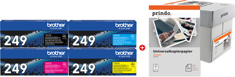 Brother TN-249 MCVP black / cyan / magenta / yellow / White value pack (+ Prindo Universal Papier 2500 Blatt) (TN-249 MCVP) value pack black / cyan / magenta / yellow / White ~16,500 pages €705.48VAT incl., free shipping directly from stock Delivery time 1-2 days add to basket Content TN-249BK black ~4.500 pages 2.6 p / page TN-249C cyan ~4.000 pages 4.7 p / page TN-249M magenta ~4.000 pages 4.7 p / page TN-249Y yellow ~4.000 pages 4.7 p / page White Product information "Brother TN-249 MCVP black / cyan / magenta / yellow / White value pack + Prindo Universal Papier 2500 Blatt"value pack black / cyan / magenta / yellow / White ~16,500 pages Read moreread lessSuitable for the following printersBrother HL-LHL-L8230CDWHL-L8240CDWBrother MFC-LMFC-L8340CDWMFC-L8390CDWManufacturer information on product safety (GPSR)Brother International (Nederland) B.V.Zanderij 251185 ZM Amstelveen E-mail: brother@brother.de Suitable accessories for your printer Original Brother TN-248BK black tonercolourTape Width Size colour: Page number:~1,000 pagesPage price:6.0 p / page€60.27VAT incl., plus shipping costs directly from stock add to basket directly from stock add to basket directly from stock add to basket directly from stock add to basket directly from stock add to basket directly from stock add to basket directly from stock add to basket directly from stock add to basket directly from stock add to basket directly from stock add to basket directly from stock add to basket directly from stock add to basket directly from stock add to basket directly from stock add to basket directly from stock add to basket Price / performance winner compatible with Brother TN-248BK Prindo Classic black tonercolourTape Width Size colour: Page number:~1,000 pagesPage price:3.6 p / page€36.30VAT incl., plus shipping costs directly from stock add to basket directly from stock add to basket directly from stock add to basket directly from stock add to basket directly from stock add to basket directly from stock add to basket directly from stock add to basket directly from stock add to basket directly from stock add to basket directly from stock add to basket directly from stock add to basket directly from stock add to basket directly from stock add to basket directly from stock add to basket directly from stock add to basket directly from stock add to basket Delivery date unknown add to basket Original Brother toner for your printer. Brother TN-248BK black tonercolourTape Width Size:Standard colour: Page number:~1,000 pagesPage price:6.0 p / page€60.27VAT incl., plus shipping costs directly from stock add to basket Brother TN-249BK black tonercolourTape Width Size:Standard colour: Page number:~4,500 pagesPage price:2.7 p / page€120.71VAT incl., free shipping directly from stock add to basket Brother TN-248XLBK black tonercolourTape Width Size:XL colour: Page number:~3,000 pagesPage price:3.4 p / page€101.57VAT incl., free shipping directly from stock add to basket Brother TN-248 MCVP black / cyan / magenta / yellow / White value pack (+ Prindo Universal Papier 2500 Blatt)colourTape Width Size:Standard colour: Page number:~4,000 pagesPage price:6.0 p / page€283.74-15%€241.63VAT incl., free shipping directly from stock add to basket Brother TN-248XL MCVP black / cyan / magenta / yellow / White value pack (+ Prindo Universal Papier 2500 Blatt)colourTape Width Size:XL colour: Page number:~9,900 pagesPage price:4.9 p / page€480.19VAT incl., free shipping directly from stock add to basket Brother TN-248C cyan tonercolourTape Width Size:Standard colour: Page number:~1,000 pagesPage price:6.5 p / page€64.77VAT incl., plus shipping costs directly from stock add to basket Brother TN-249C cyan tonercolourTape Width Size:Standard colour: Page number:~4,000 pagesPage price:4.7 p / page€189.21VAT incl., free shipping directly from stock add to basket Brother TN-248XLC cyan tonercolourTape Width Size:XL colour: Page number:~2,300 pagesPage price:5.2 p / page€119.95VAT incl., free shipping directly from stock add to basket Brother TN-248M magenta tonercolourTape Width Size:Standard colour: Page number:~1,000 pagesPage price:6.5 p / page€64.77VAT incl., plus shipping costs directly from stock add to basket Brother TN-249M magenta tonercolourTape Width Size:Standard colour: Page number:~4,000 pagesPage price:4.7 p / page€189.21VAT incl., free shipping directly from stock add to basket Brother TN-248XLM magenta tonercolourTape Width Size:XL colour: Page number:~2,300 pagesPage price:5.1 p / page€117.67VAT incl., free shipping directly from stock add to basket Brother TN-248Y yellow tonercolourTape Width Size:Standard colour: Page number:~1,000 pagesPage price:6.5 p / page€64.77VAT incl., plus shipping costs directly from stock add to basket Brother TN-249Y yellow tonercolourTape Width Size:Standard colour: Page number:~4,000 pagesPage price:4.7 p / page€189.21VAT incl., free shipping directly from stock add to basket Brother TN-248XLY yellow tonercolourTape Width Size:XL colour: Page number:~2,300 pagesPage price:5.2 p / page€119.95VAT incl., free shipping directly from stock add to basket Brother TN-248CMYK multipack black / cyan / magenta / yellow (CI75170)colourTape Width Size:Standard colour: Page number:~4,000 pagesPage price:5.4 p / page€254.58-15%€215.88VAT incl., free shipping directly from stock add to basket Our price / performance winners Compatible Prindo Classic toner for your printer.✅ Level indicator ✅ More printing performance ✅ 5-year warranty ✅ No loss of warranty for your printer compatible with Brother TN-248BK Prindo Classic black tonercolourTape Width Size:Standard colour: Page number:~1,000 pagesPage price:3.6 p / page€36.30VAT incl., plus shipping costs directly from stock add to basket compatible with Brother TN-249BK Prindo Classic black tonercolourTape Width Size:Standard colour: Page number:~4,500 pagesPage price:1.6 p / page€71.86VAT incl., plus shipping costs direct