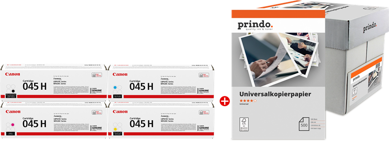 Canon 045H MVCP black / cyan / magenta / yellow value pack (+ Prindo Universal Papier 2500 Blatt) (045H MVCP) value pack black / cyan / magenta / yellow ~9,400 pages €380.85VAT incl., free shipping directly from stock Delivery time 1-2 days add to basket Content 045hbk black ~2.800 pages 3.2 p / page 045hc cyan ~2.200 pages 4.0 p / page 045hm magenta ~2.200 pages 4.0 p / page 045hy yellow ~2.200 pages 4.0 p / page White Product information "Canon 045H MVCP black / cyan / magenta / yellow value pack + Prindo Universal Papier 2500 Blatt"value pack black / cyan / magenta / yellow ~9,400 pages Read moreread lessSuitable for the following printersCanon i-SENSYS LBPi-SENSYS LBP-611Cni-SENSYS LBP-613CdwCanon i-SENSYS MFi-SENSYS MF 631Cni-SENSYS MF 633Cdwi-SENSYS MF 635CxManufacturer information on product safety (GPSR)Canon Europa N.V.Bovenkerkerweg 591185 XB Amstelveen Website: www.canon-europe.com Suitable accessories for your printer Original Canon 045bk black toner (1242C002)colourTape Width Size colour: Page number:~1,400 pagesPage price:4.6 p / page€64.47VAT incl., plus shipping costs directly from stock add to basket directly from stock add to basket directly from stock add to basket directly from stock add to basket directly from stock add to basket directly from stock add to basket directly from stock add to basket directly from stock add to basket Top seller compatible with Canon 045hbk Prindo Green XL black tonercolourTape Width Size colour: Page number:~2,800 pagesPage price:2.0 p / page€57.37VAT incl., plus shipping costs directly from stock add to basket Price / performance winner compatible with Canon 045bk Prindo Classic black tonercolourTape Width Size colour: Page number:~1,400 pagesPage price:2.7 p / page€37.90VAT incl., plus shipping costs directly from stock add to basket directly from stock add to basket directly from stock add to basket directly from stock add to basket directly from stock add to basket directly from stock add to basket directly from stock add to basket directly from stock add to basket Original Canon toner for your printer. Canon 045bk black toner (1242C002)colourTape Width Size:Standard colour: Page number:~1,400 pagesPage price:4.6 p / page€64.47VAT incl., plus shipping costs directly from stock add to basket Canon 045hbk black toner (1246C002)colourTape Width Size:XL colour: Page number:~2,800 pagesPage price:3.1 p / page€85.47VAT incl., plus shipping costs directly from stock add to basket Canon 045c cyan toner (1241C002)colourTape Width Size:Standard colour: Page number:~1,300 pagesPage price:4.3 p / page€55.48VAT incl., plus shipping costs directly from stock add to basket Canon 045hc cyan toner (1245C002)colourTape Width Size:XL colour: Page number:~2,200 pagesPage price:3.8 p / page€83.97VAT incl., plus shipping costs directly from stock add to basket Canon 045m magenta toner (1240C002)colourTape Width Size:Standard colour: Page number:~1,300 pagesPage price:4.3 p / page€55.48VAT incl., plus shipping costs directly from stock add to basket Canon 045hm magenta toner (1244C002)colourTape Width Size:XL colour: Page number:~2,200 pagesPage price:3.8 p / page€83.97VAT incl., plus shipping costs directly from stock add to basket Canon 045y yellow toner (1239C002)colourTape Width Size:Standard colour: Page number:~1,300 pagesPage price:4.4 p / page€56.98VAT incl., plus shipping costs directly from stock add to basket Canon 045hy yellow toner (1243C002)colourTape Width Size:XL colour: Page number:~2,200 pagesPage price:3.8 p / page€83.97VAT incl., plus shipping costs directly from stock add to basket Our Top Sellers Compatible Prindo Green toner for your printer.✅ Level indicator ✅ Environmentally friendly recycled ✅ More printing performance ✅ 5-year warranty ✅ No loss of warranty for your printer compatible with Canon 045hbk Prindo Green XL black tonercolourTape Width Size:XL colour: Page number:~2,800 pagesPage price:2.0 p / page€57.37VAT incl., plus shipping costs directly from stock add to basket Our price / performance winners Compatible Prindo Classic toner for your printer.✅ Level indicator ✅ More printing performance ✅ 5-year warranty ✅ No loss of warranty for your printer compatible with Canon 045bk Prindo Classic black tonercolourTape Width Size:Standard colour: Page number:~1,400 pagesPage price:2.7 p / page€37.90VAT incl., plus shipping costs directly from stock add to basket compatible with Canon 045hbk Prindo Classic XL black tonercolourTape Width Size:XL colour: Page number:~2,800 pagesPage price:1.9 p / page€53.28VAT incl., plus shipping costs directly from stock add to basket compatible with Canon 045c Prindo Classic cyan tonercolourTape Width Size:Standard colour: Page number:~1,300 pagesPage price:2.6 p / page€33.97VAT incl., plus shipping costs directly from stock add to basket compatible with Canon 045hc Prindo Classic XL cyan tonercolourTape Width Size:XL colour: Page number:~2,200 pagesPage price:2.5 p / page€56.04VAT incl., plus shipping costs directly from stock add to basket compatible with Canon 045m Prindo Classic magenta tonercolourTape Width Size:Standard colour: Page number:~1,300 pagesPage price:2.7 p / page€34.90VAT incl., plus shipping costs directly from stock add to basket compatible with Canon 045hm Prindo Classic XL magenta tonercolourTape Width Size:XL colour: Page number:~2,200 pagesPage price:2.5 p / page€56.04VAT incl., plus shipping costs directly from stock add to basket compatible with Canon 045y Prindo Classic yellow tonercolourTape Width Size:Standard colour: Page number:~1,300 pagesPage price:2.6 p / page€33.97VAT incl., plus shipping costs directly from stock add to basket compatible with Canon 045hy Prindo Classic XL yellow tonercolourTape Width Size:XL colour: Page number:~2,200 pagesPage price:2.5 p / page€55.10VAT incl., plus shipping costs directly from stock add to basket Your product is right in your shopping cart! Select your printer to m