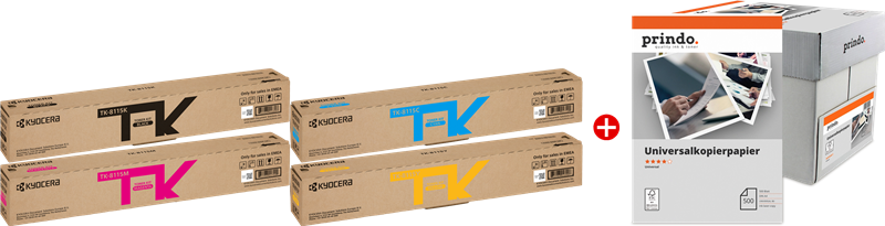 Kyocera TK-8115 MCVP 01 black / cyan / magenta / yellow / White value pack (+ Prindo Universal Papier 2500 Blatt) (TK-8115 MCVP 01) value pack black / cyan / magenta / yellow / White ~30,000 pages €333.94VAT incl., free shipping directly from stock Delivery time 1-2 days add to basket Content TK-8115K black ~12.000 pages 0.6 p / page TK-8115C cyan ~6.000 pages 1.3 p / page TK-8115M magenta ~6.000 pages 1.3 p / page TK-8115Y yellow ~6.000 pages 1.3 p / page White Product information "Kyocera TK-8115 MCVP 01 black / cyan / magenta / yellow / White value pack + Prindo Universal Papier 2500 Blatt"value pack black / cyan / magenta / yellow / White ~30,000 pages Read moreread lessSuitable for the following printersKyocera ECOSYS MECOSYS M8124cidnECOSYS M8130cidn Suitable accessories for your printer Original Kyocera TK-8115K black toner (1T02P30NL0)colourTape Width Size colour: Page number:~12,000 pagesPage price:0.7 p / page€79.04VAT incl., plus shipping costs directly from stock add to basket directly from stock add to basket directly from stock add to basket directly from stock add to basket Price / performance winner compatible with Kyocera TK-8115K Prindo Classic black tonercolourTape Width Size colour: Page number:~12,000 pagesPage price:0.4 p / page€50.00VAT incl., plus shipping costs directly from stock add to basket directly from stock add to basket directly from stock add to basket directly from stock add to basket directly from stock add to basket Original Kyocera toner for your printer. Kyocera TK-8115K black toner (1T02P30NL0)colourTape Width Size:Standard colour: Page number:~12,000 pagesPage price:0.7 p / page€79.04VAT incl., plus shipping costs directly from stock add to basket Kyocera TK-8115C cyan toner (1T02P3CNL0)colourTape Width Size:Standard colour: Page number:~6,000 pagesPage price:1.3 p / page€77.58VAT incl., plus shipping costs directly from stock add to basket Kyocera TK-8115M magenta toner (1T02P3BNL0)colourTape Width Size:Standard colour: Page number:~6,000 pagesPage price:1.3 p / page€77.58VAT incl., plus shipping costs directly from stock add to basket Kyocera TK-8115Y yellow toner (1T02P3ANL0)colourTape Width Size:Standard colour: Page number:~6,000 pagesPage price:1.3 p / page€77.58VAT incl., plus shipping costs directly from stock add to basket Our price / performance winners Compatible Prindo Classic toner for your printer.✅ Level indicator ✅ More printing performance ✅ 5-year warranty ✅ No loss of warranty for your printer compatible with Kyocera TK-8115K Prindo Classic black tonercolourTape Width Size:Standard colour: Page number:~12,000 pagesPage price:0.4 p / page€50.00VAT incl., plus shipping costs directly from stock add to basket Prindo Classic black / cyan / magenta / yellow / White value packcolourTape Width Size:Standard colour: Page number:~30,000 pagesPage price:0.7 p / page€230.54-13%€201.37VAT incl., free shipping directly from stock add to basket compatible with Kyocera TK-8115C Prindo Classic cyan tonercolourTape Width Size:Standard colour: Page number:~6,000 pagesPage price:0.8 p / page€50.46VAT incl., plus shipping costs directly from stock add to basket compatible with Kyocera TK-8115M Prindo Classic magenta tonercolourTape Width Size:Standard colour: Page number:~6,000 pagesPage price:0.8 p / page€50.46VAT incl., plus shipping costs directly from stock add to basket compatible with Kyocera TK-8115Y Prindo Classic yellow tonercolourTape Width Size:Standard colour: Page number:~6,000 pagesPage price:0.8 p / page€50.46VAT incl., plus shipping costs directly from stock add to basket Your product is right in your shopping cart! Select your printer to make sure the selected product fits for you.Loading...