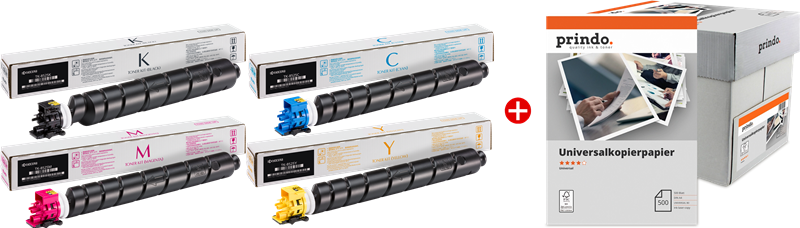Kyocera TK-8525 MCVP 01 black / cyan / magenta / yellow / White value pack (+ Prindo Universal Papier 2500 Blatt) (TK-8525 MCVP 01) value pack black / cyan / magenta / yellow / White ~90,000 pages €534.46VAT incl., free shipping directly from stock Delivery time 1-2 days add to basket Content TK-8525K black ~30.000 pages 0.2 p / page TK-8525C cyan ~20.000 pages 0.7 p / page TK-8525M magenta ~20.000 pages 0.7 p / page TK-8525Y yellow ~20.000 pages 0.7 p / page White Product information "Kyocera TK-8525 MCVP 01 black / cyan / magenta / yellow / White value pack + Prindo Universal Papier 2500 Blatt"value pack black / cyan / magenta / yellow / White ~90,000 pages Read moreread lessSuitable for the following printersKyocera TASKalfaTASKalfa 4052ciTASKalfa 4053ci Suitable accessories for your printer Original Kyocera TK-8525K black toner (1T02RM0NL0)colourTape Width Size colour: Page number:~30,000 pagesPage price:0.2 p / page€73.18VAT incl., plus shipping costs directly from stock add to basket directly from stock add to basket directly from stock add to basket Delivery date unknown add to basket Original Kyocera toner for your printer. Kyocera TK-8525K black toner (1T02RM0NL0)colourTape Width Size:Standard colour: Page number:~30,000 pagesPage price:0.2 p / page€73.18VAT incl., plus shipping costs directly from stock add to basket Kyocera TK-8525C cyan toner (1T02RMCNL0)colourTape Width Size:Standard colour: Page number:~20,000 pagesPage price:0.7 p / page€146.37VAT incl., free shipping directly from stock add to basket Kyocera TK-8525M magenta toner (1T02RMBNL0)colourTape Width Size:Standard colour: Page number:~20,000 pagesPage price:0.7 p / page€146.37VAT incl., free shipping directly from stock add to basket Kyocera TK-8525Y yellow toner (1T02RMANL0)colourTape Width Size:Standard colour: Page number:~20,000 pagesPage price:0.7 p / page€146.37VAT incl., free shipping Delivery date unknown add to basket Your product is right in your shopping cart! Select your printer to make sure the selected product fits for you.Loading...