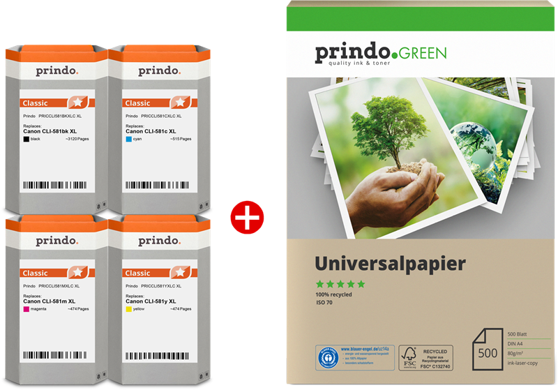 Prindo Classic black / cyan / magenta / yellow value pack (PRSCCLI581XL MCVP) value pack black / cyan / magenta / yellow €47.77-12%€42.16VAT incl., plus shipping costs directly from stock Delivery time 1-2 days add to basket Content Prindo Classic XL black ~2.280 pages 0.4 p / page Prindo Classic XL cyan ~515 pages 1.8 p / page Prindo Classic XL magenta ~474 pages 2.0 p / page Prindo Classic XL yellow ~514 pages 1.8 p / page Graduated pricesfrom 1 pcs.€42.16VAT incl.from 2 pcs.€40.05VAT incl.from 4 pcs.€37.95VAT incl.from 6 pcs.€35.84VAT incl. Product information "Prindo Classic black / cyan / magenta / yellow value pack PRSCCLI581XL MCVP"value pack black / cyan / magenta / yellow Prindo Promise: Top quality for a fair price, that is what our exclusive private label product line stand for Remanufactured original toners and cartridges, working parts changes and only highest quality of colors and materials Only selected partners and suppliers 5 years guarantee on Prindo products – no loss of warranty for your printer Read moreread lessSuitable for the following printersCanon PIXMA TRPIXMA TR7550PIXMA TR8550TR7650Canon PIXMA TSPIXMA TS6150PIXMA TS6151PIXMA TS6250PIXMA TS6251PIXMA TS6350PIXMA TS6350aPIXMA TS6351PIXMA TS6351aPIXMA TS705PIXMA TS705aPIXMA TS8150PIXMA TS8151PIXMA TS8152PIXMA TS8250PIXMA TS8251PIXMA TS8252PIXMA TS8350PIXMA TS8350aPIXMA TS8351PIXMA TS8351aPIXMA TS8352PIXMA TS8352aPIXMA TS9150PIXMA TS9155PIXMA TS9550PIXMA TS9550aPIXMA TS9551CPIXMA TS9551Catechnical dataWeight & dimensionsWeight2760 kgHeight145 mmDepth310 mmWidth220 mmFeaturesBrand compatibilityPrindoCartridge return & recyclingYesMaster (outer) case GTIN (EAN/UPC)SizeXLYesAll details without engagement. Data source: IceCatManufacturer information on product safety (GPSR)Media-Concept Bürobedarf GmbH Inselkammerstrasse 582008 Unterhaching E-mail: mail@prindo.ie Website: www.prindo.ie Suitable accessories for your printer Original Canon CLI-581bk black ink cartridge (2106C001)colourTape Width Size colour: Page number:~750 pagesPage price:1.8 p / page€13.20VAT incl., plus shipping costs directly from stock add to basket directly from stock add to basket directly from stock add to basket directly from stock add to basket directly from stock add to basket directly from stock add to basket directly from stock add to basket directly from stock add to basket directly from stock add to basket directly from stock add to basket directly from stock add to basket directly from stock add to basket directly from stock add to basket directly from stock add to basket directly from stock add to basket directly from stock add to basket directly from stock add to basket directly from stock add to basket Top seller compatible with Canon CLI-581bk XXL black (1998C001) Prindo Green XXL black ink cartridgecolourTape Width Size colour: Page number:~4,590 pagesPage price:0.4 p / page€16.08VAT incl., plus shipping costs directly from stock add to basket directly from stock add to basket directly from stock add to basket directly from stock add to basket directly from stock add to basket directly from stock add to basket directly from stock add to basket Price / performance winner compatible with Canon CLI-581bk XL black (2052C001) Prindo Classic XL black ink cartridgecolourTape Width Size colour: Page number:~2,280 pagesPage price:0.5 p / page€10.56VAT incl., plus shipping costs directly from stock add to basket directly from stock add to basket directly from stock add to basket directly from stock add to basket directly from stock add to basket directly from stock add to basket directly from stock add to basket directly from stock add to basket directly from stock add to basket directly from stock add to basket directly from stock add to basket directly from stock add to basket directly from stock add to basket Original Canon multipack for your printer. Canon CLI-581bk black ink cartridge (2106C001)colourTape Width Size:Standard colour: Page number:~750 pagesPage price:1.8 p / page€13.20VAT incl., plus shipping costs directly from stock add to basket Canon PGI-580pgbk black ink cartridge (2078C001)colourTape Width Size:Standard colour: Page number:~200 pagesPage price:7.1 p / page€14.18VAT incl., plus shipping costs directly from stock add to basket Canon CLI-581bk XL black ink cartridge (2052C001)colourTape Width Size:XL colour: Page number:~2,280 pagesPage price:0.8 p / page€17.24VAT incl., plus shipping costs directly from stock add to basket Canon PGI-580pgbk XL black ink cartridge (2024C001)colourTape Width Size:XL colour: Page number:~400 pagesPage price:4.8 p / page€19.40VAT incl., plus shipping costs directly from stock add to basket Canon CLI-581bk XXL black ink cartridge (1998C001)colourTape Width Size:XXL colour: Page number:~4,590 pagesPage price:0.5 p / page€24.44VAT incl., plus shipping costs directly from stock add to basket Canon PGI-580pgbk XXL black ink cartridge (1970C001)colourTape Width Size:XXL colour: Page number:~600 pagesPage price:4.2 p / page€25.48VAT incl., plus shipping costs directly from stock add to basket Canon CLI-581c cyan ink cartridge (2103C001)colourTape Width Size:Standard colour: Page number:~259 pagesPage price:5.1 p / page€13.20VAT incl., plus shipping costs directly from stock add to basket Canon CLI-581c XL cyan ink cartridge (2049C001)colourTape Width Size:XL colour: Page number:~515 pagesPage price:3.3 p / page€17.24VAT incl., plus shipping costs directly from stock add to basket Canon CLI-581c XXL cyan ink cartridge (1995C001)colourTape Width Size:XXL colour: Page number:~920 pagesPage price:2.7 p / page€24.47VAT incl., plus shipping costs directly from stock add to basket Canon CLI-581m magenta ink cartridge (2104C001)colourTape Width Size:Standard colour: Page number:~237 pagesPage price:5.6 p / page€13.38VAT incl., plus shipping costs directly from stock add to basket Canon CLI-581m XL magenta ink cartridge (2050C001)colourTape Width Size:XL colour: P