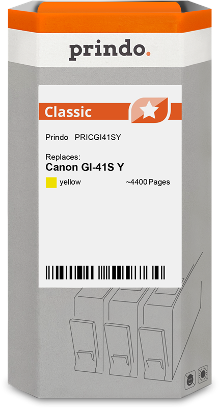 compatible with Canon GI-41S Y yellow (5876C001) Prindo Classic yellow ink cartridge (PRICGI41SY) ink cartridge yellow ~4,400 pages €5.03VAT incl., plus shipping costs directly from stock Delivery time 1-2 days add to basket Prindo Classic black ~3,100 pages0.2 p / page €5.06 Prindo Classic cyan ~4,400 pages0.1 p / page €5.03 Prindo Classic magenta ~4,400 pages0.1 p / page €5.03 Prindo Classic yellow ~4,400 pages0.1 p / page €5.03 Graduated pricesfrom 1 pcs.€5.03VAT incl.from 2 pcs.€4.78VAT incl.from 4 pcs.€4.53VAT incl.from 6 pcs.€4.28VAT incl. Product information "Prindo Classic yellow ink cartridge PRICGI41SY"ink cartridge yellow ~4,400 pages Prindo Promise: Top quality for a fair price, that is what our exclusive private label product line stand for Remanufactured original toners and cartridges, working parts changes and only highest quality of colors and materials Only selected partners and suppliers 5 years guarantee on Prindo products – no loss of warranty for your printer Read moreread lessSuitable for the following printersCanon PIXMA GPIXMA G1420PIXMA G2420PIXMA G2430PIXMA G2460PIXMA G2470PIXMA G3420PIXMA G3430PIXMA G3460PIXMA G3470 BKPIXMA G3470 REDPIXMA G3470 WHPIXMA G3480Manufacturer information on product safety (GPSR)Media-Concept Bürobedarf GmbH Inselkammerstrasse 582008 Unterhaching E-mail: mail@prindo.ie Website: www.prindo.ie Suitable accessories for your printer Original Canon GI-41pgbk black ink cartridge (4528C001)colourTape Width Size colour: Page number:~7,600 pagesPage price:0.2 p / page€11.65VAT incl., plus shipping costs directly from stock add to basket directly from stock add to basket directly from stock add to basket directly from stock add to basket directly from stock add to basket Delivery date unknown add to basket directly from stock add to basket directly from stock add to basket Original Canon Ink cartridge for your printer. Canon GI-41pgbk black ink cartridge (4528C001)colourTape Width Size:Standard colour: Page number:~7,600 pagesPage price:0.2 p / page€11.65VAT incl., plus shipping costs directly from stock add to basket Canon GI-41S PGBK black ink cartridge (5859C001)colourTape Width Size:Standard colour: Page number:~3,100 pagesPage price:0.3 p / page€8.25VAT incl., plus shipping costs directly from stock add to basket Canon GI-41c cyan ink cartridge (4543C001)colourTape Width Size:Standard colour: Page number:~7,700 pagesPage price:0.1 p / page€10.04VAT incl., plus shipping costs directly from stock add to basket Canon GI-41S C cyan ink cartridge (5874C001)colourTape Width Size:Standard colour: Page number:~4,400 pagesPage price:0.2 p / page€8.23VAT incl., plus shipping costs directly from stock add to basket Canon GI-41m magenta ink cartridge (4544C001)colourTape Width Size:Standard colour: Page number:~7,700 pagesPage price:0.1 p / page€10.04VAT incl., plus shipping costs directly from stock add to basket Canon GI-41S M magenta ink cartridge (5875C001)colourTape Width Size:Standard colour: Page number:~4,400 pagesPage price:0.2 p / page€8.23VAT incl., plus shipping costs Delivery date unknown add to basket Canon GI-41y yellow ink cartridge (4545C001)colourTape Width Size:Standard colour: Page number:~7,700 pagesPage price:0.1 p / page€10.04VAT incl., plus shipping costs directly from stock add to basket Canon GI-41S Y yellow ink cartridge (5876C001)colourTape Width Size:Standard colour: Page number:~4,400 pagesPage price:0.2 p / page€8.23VAT incl., plus shipping costs directly from stock add to basket Your product is right in your shopping cart! Select your printer to make sure the selected product fits for you.Loading...